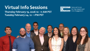Join this information session to learn more about the UC National Center for Free Speech and Civic Engagement’s fellows program and application process. Former fellows will be available to discuss their projects and findings, their experiences being a fellow and a part of the larger Center community as well as to answer questions.